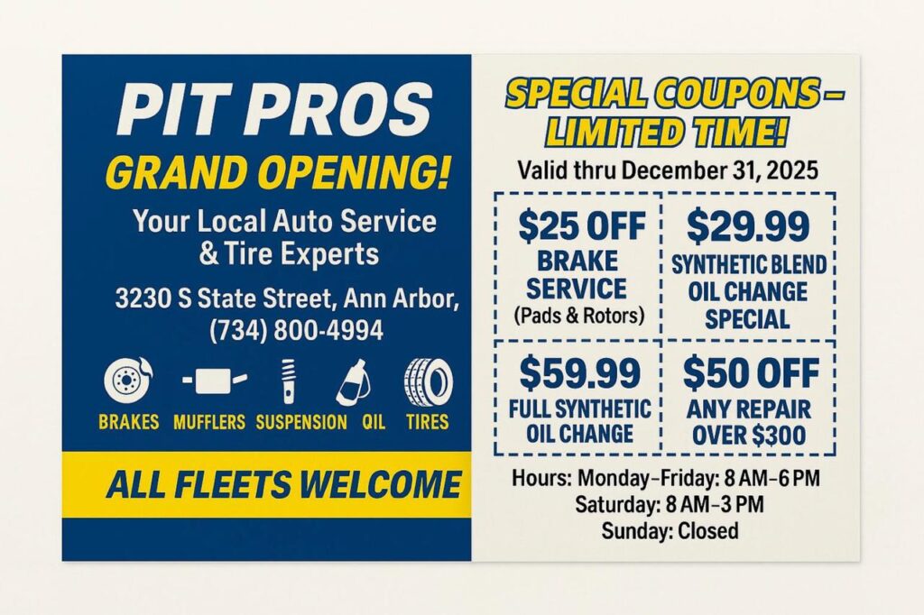 EXCELLENT Based on 9 reviews Posted on Tashara JacksonTrustindex verifies that the original source of the review is Google. Dependable shop that fixed my brakes properly the first time unlike my previous experiences with other mechanics around!Posted on M MTrustindex verifies that the original source of the review is Google. Fast friendly customer service and the prices were good. I will be back.Posted on Moe NajmTrustindex verifies that the original source of the review is Google. instantly started working on my car and customer service was very helpful and polite throughout the process. My car had a slight problem with the transmission and they were very knowledgeable on how to fix it properly. well done.Posted on Randy MoussawelTrustindex verifies that the original source of the review is Google. I had an excellent experience at “The Pit Pros” in Ann Arbor! The team was professional, knowledgeable, and incredibly transparent about the repair process. They diagnosed my car’s issue quickly, provided a fair quote, and completed the work on time. The staff was friendly, answering all my questions with patience. My car runs perfectly now, and I appreciated their attention to detail and commitment to quality. Highly recommend this shop to anyone in the Ann Arbor area looking for reliable auto repair!Posted on Britany ManchesterTrustindex verifies that the original source of the review is Google. These guys saved me big time. My front and back breaks were way over do for a change, fiancé and I thought we could do it ourselves but we’re having trouble with the calliper, we called Pit Pros and asked for a mobile mechanic and he was there helping us within 20 minutes. Ended up taking my car to the shop to get it on the hoist and looked over everything else so I know what else needs work. 5 star service all around. These guys are quick, efficient, and have amazing customer service. Will definitely be going to them when I need another repair. ASLO THEY FINANCE!!!!‼️‼️Posted on Mohammed JasebTrustindex verifies that the original source of the review is Google. Amazing customer service, great communication, and phenomenal work. Will definitely bring my cars back herePosted on MarielTrustindex verifies that the original source of the review is Google. I had a great experience with Rob! My engine light was on and he had it diagnosed right away. Even had same day tune up! Everything was super quick and efficient. Clear communication and great pricing.